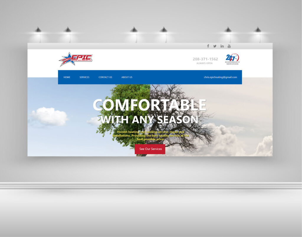 This project focused on creating a responsive website for a heating and cooling company offering repair, maintenance, and 24/7 emergency services. The primary objective was to clearly communicate reliability, availability, and trust—especially for users visiting the site during urgent or high-stress situations.